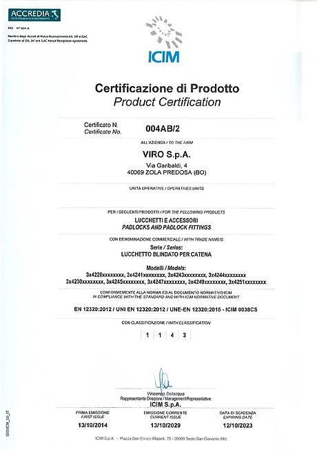 Certyfikat do kłódek VIRO 8.2mm oraz 10mm