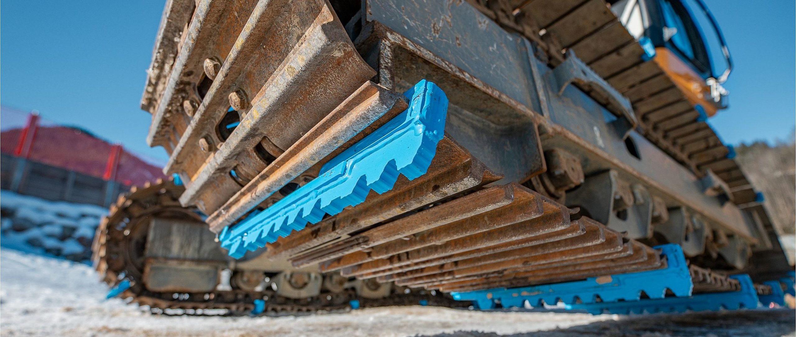 Zastosowanie zestawu 24 sztuk pewag clamptrax rozwiązuje problem. Tak “uzbrojone” gąsienice głęboko wgryzają się w miękkie czy też lodowe podłoże zapewniając przyczepność maszyny gąsienicowej.